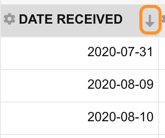 Place your cursor over a column header, and to the right of the column name you'll see an up or down arrow. Click the arrow to change the sorting in the table by that column. Click the arrow again to change the sort direction.