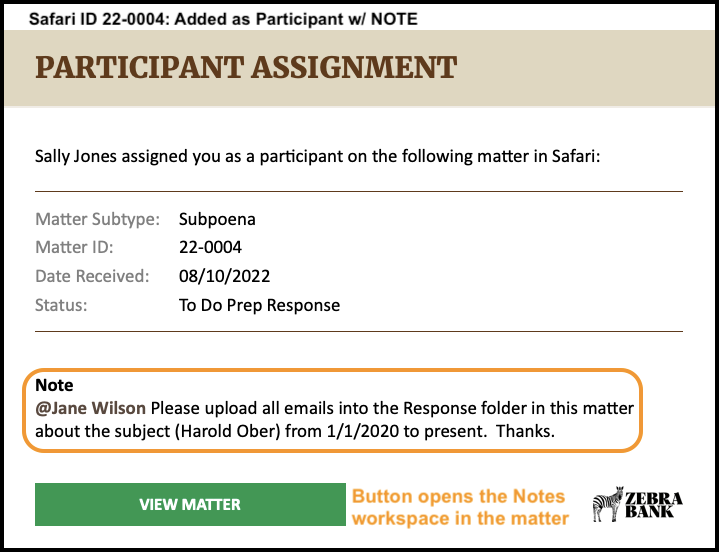 (either as the Reviewer, a Participant, or because they have "Subtype Access" -- see Access Restrictions for more information). What does the Note email look like? Below is a standard Note email: